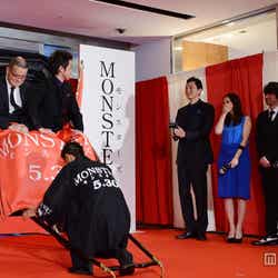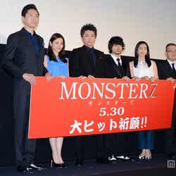 藤原は21日、都内にて行われた映画「MONSTERZ モンスターズ」ジャパンプレミアにW主演の山田孝之や中田秀夫監督とともに出席。イベントでは、撮影時に「30分遅刻してしまった」というエピソードを明かした。「山田くんのカットから撮影だからと思って、ゆっくりして9時くらいに現場入ったら、シーンとしてて…。その日に限って、監督が藤原くんと山田くんのシーンから撮りたいって言ってくださったみたいで…」と事の経緯を明かした藤原。その後、スタッフやキャストと行ったバーベーキューでは、「とりあえず脱がされて、全裸にされて、白鳥のこういうのを付けられて。監督が考えた罰ゲームだったみたいなんですけど、そのままプールに行ったんです(笑)」と告白。されるがままに罰ゲームを受け入れた藤原に対し監督は、「すごく可愛かったですよ(笑)」とコメントし場を盛り上げた。