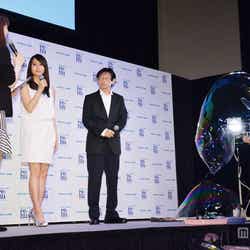 イベントでは、新CMの内容にちなんで、シャボン玉アーティストの「杉山兄弟」も登場。堀北のためにシャボン玉を作る実演が行われた。形も大きさも異なる様々なシャボン玉が作られていくと、堀北は、「初めて見ました。こんなふうなことができるなんて知りませんでした」と驚きを隠せない様子。