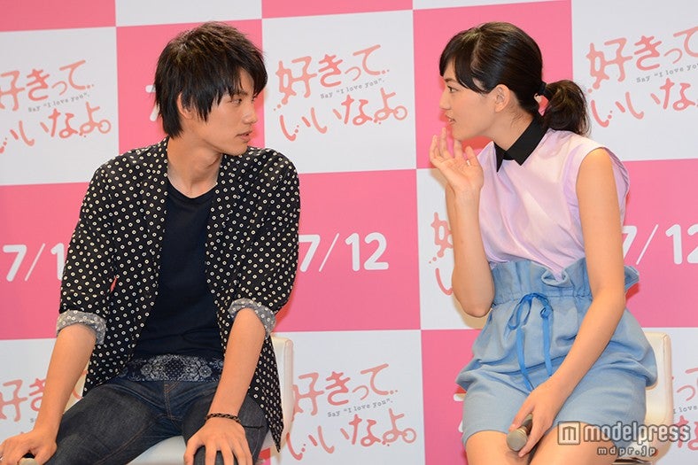 川口と福士は22日、都内で行われた映画「好きっていいなよ。」(7月12日公開)特別イベントに出席。イベント終了間際、翌日が“キスの日”※ということにちなみ、MCからキスが振られた2人。すると川口が、照れながらも思い切って福士の頬に3秒ほどキス。会場から「キャー」という興奮の声があがるにつれ、川口はもちろん、福士もみるみるうちに赤面した。川口が「なんだか、ごめんなさい」と恐縮。するとキス前は快調にトークを飛ばしていた福士だったが、「いやぁ…」としばしうまく話せなくなっていた。劇中では何度も訪れるキスシーン。それについて福士は「何回もしました、キスを。ワンシーンで6回ぐらいするんですね」と笑顔で語り、「セリフを言ってからキスをするので、毎回セリフのニュアンスを変えていくのが結構大変でしたね」と撮影の苦労を語った。川口は福士のキスについて「ちゃんと自分のことを大事に思ってくれてるんだと感じて、ドキッとしちゃいますね」とはにかんだ。