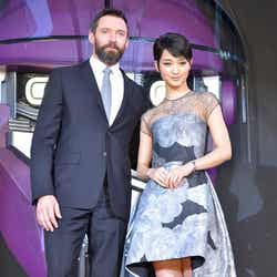 剛力は27日、東京都内で開催された映画『X-MEN フューチャー&パスト』のジャパンプレミアで、来日中のハリウッド俳優ヒュー・ジャックマンと初対面した。胸元の透け感がセクシーなドレスで登場した剛力は、「直前に舞台袖でご挨拶させていただいたけれど、緊張。でも優しくて『緊張しています』と英語で伝えたら『大丈夫』と言われたので、ほっとしています」とジェントルなヒューに感謝。するとヒューは剛力ファンの「剛ちゃん~!剛ちゃん~!」という声援に気づいたのか「ほら、あなたのファンがたくさんいますよ。あっちにもこっちにもね」と剛力に華を持たせていた。