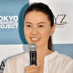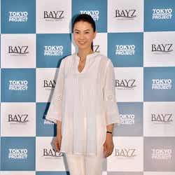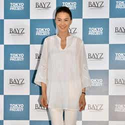 江角は28日、都内にて行われた住宅メーカーの新CM発表会に出席。裾がフレアに広がったトップスに細身のパンツを合わせた、全身ホワイトのワンカラースタイルで抜群のプロポーションを披露した。