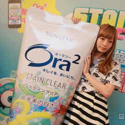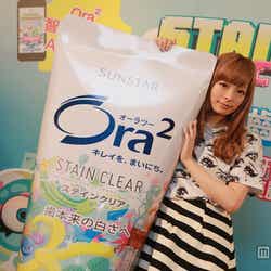 また、きゃりーはCMについて「今回の衣装は“戦うはみがき戦士”をテーマに作ってもらいました。すごくかわいくて本当に気に入りました。歯みがきチューブが沢山ついているのがポイントです」とコメント。「撮影時に歯みがき粉を押してみたら、実際に中身が飛び出てきたので、びっくりしました」とお茶目なエピソードも披露。見どころは「『すていんず』というキャラクターと戦っているのですが、そのキャラクターたちのかわいらしさと私の戦闘シーンがおすすめです。クオリティが高くて面白いCMになったと思います」とアピールした。