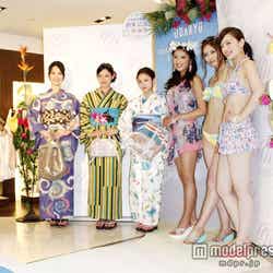 久松郁実は1日、都内で行われたリゾートファッションショーに出演。2014年三愛水着イメージガールを務める久松は、ペイズリー柄のワンピース型の水着で引き締まったヘルシーボディを披露した。