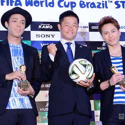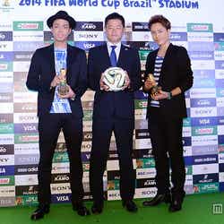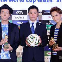 イベントでは、決勝球を初お披露目したほか、サッカー日本代表の香川真司選手からのメッセージを紹介。さらに、EXILE TRIBEが担当するadidasの「2014 FIFA ワールドカップ ブラジル」イメージソング「VICTORY 2014」も初披露。同曲は、EXILEが歌う2010FIFAワールドカップ財団法人日本サッカー協会公認日本代表応援ソング「VICTORY」の2014年バージョンで、登坂らEXILE TRIBEに所属するボーカリストを新たに迎えアレンジしている。香川選手から、「夢を信じて努力すれば、その夢は実現します。『VICTORY 2014』とともにW杯のピッチですべてをかけて戦って行きたいと思いますのでみなさん応援よろしくお願い致します」というメッセージを受け取ると、登坂は「キーマンのひとりなので、背負うものも多いかと思うんですけど、頑張っていただきたい」と力強く語った。