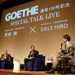 1日、都内にて雑誌「GOETHE(ゲーテ)」(幻冬舎)通巻100号を記念したスペシャルトークライブが行われ、ゲストとしてEXILEのメンバーで株式会社LDH代表取締役社長のHIROと楽天株式会社代表取締役会長兼社長の三木谷浩史氏が登場した。