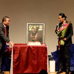 またこの日、45歳の誕生日を迎えたHIRO。サプライズで花束と特製のバースデーケーキ、そして、自身が表紙を飾ったGOETHE通巻100号の表紙を特別に額装されたものをプレゼントされ、「今年で45歳です。四捨五入すると50歳で信じられないですが、あと10年は頑張ってやっていきたいです」と嬉しそうにコメントした。(モデルプレス)