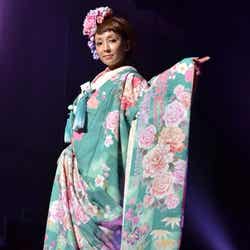 3日、都内にて行われた自身のブランドのドレス&和装コレクションショーに出席した神田。艶やかな着物や色とりどりのドレス姿を披露し、会場を魅了した。