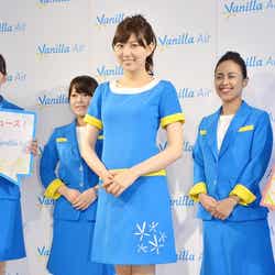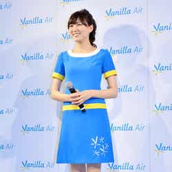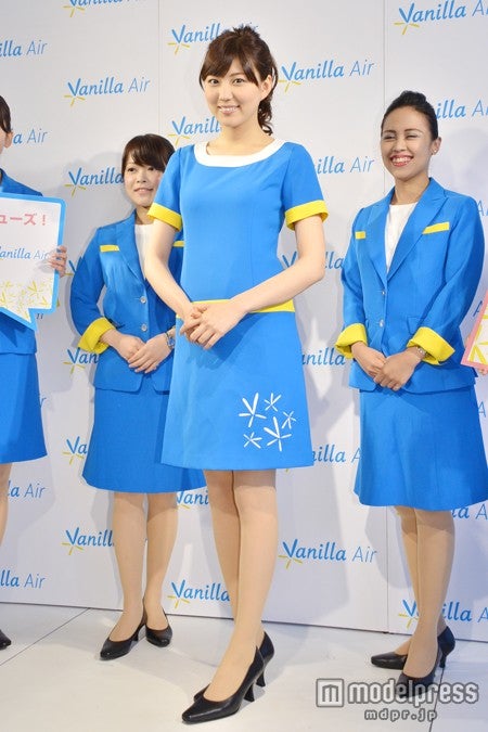 岩崎は4日、都内にて行われた「バニラエア公式“たびとも”」お披露目記者発表会に出席。航空会社バニラエアのCA着用制服をアレンジした、岩崎の為だけに作られた特注CAコスチュームで登場した。チャームポイントの股下85センチ、ひざ下43センチのまっすぐ伸びる美脚をアピールした。