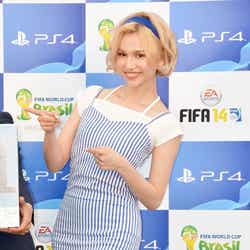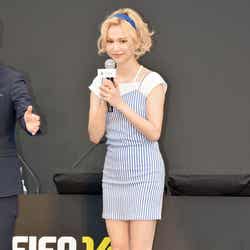 水沢は4日、都内で行われたゲームソフトの発売記念イベントに出席。この日は、サッカー日本代表のイメージカラーであるブルーのストライプ柄のミニワンピの着こなしを披露。イベントには、水沢のほか、お笑いコンビ・ピースの又吉直樹と綾部祐二、元サッカー日本代表の前園真聖氏も登場した。