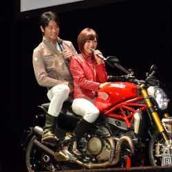 イベントでは、赤が映えるバイクを目の前にして、永井は「かっこいいですね」と興奮気味。釈とともに“タンデム=2人乗り”をし、エンジンをふかし楽しんだ。(モデルプレス)