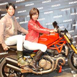 イベントでは、俳優の永井大とともにバイクにまたがり、“タンデム=2人乗り”をし、エンジンをふかし楽しむ場面も。釈はバイクの座る場所を間違えたり、シートベルトは?と質問をするなど、お茶目な一面を見せ会場の笑いを誘った。また、永井の後には、釈も運転席に座り、実際にエンジンをふかすと、振動に「本当にすごく興奮しちゃった。メロメロになってしまいました」と満面の笑顔を見せた。釈のストレートな質問に、照れ笑いの永井