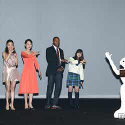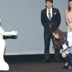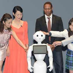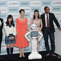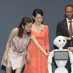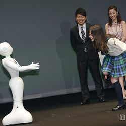 上戸は美麗なミニドレスを着こなし、スラっと伸びる美脚を披露。Pepperとの対面を楽しみに、孫社長のプレゼンや速報ニュースを読まずに来たことを明かし、期待感をふくらませていた。するとPepperが上戸らゲストの前にゆっくりと登場。満面の笑みを咲かせながら、Pepperのもとへ歩み寄ると、「今日はこんな僕の引き立て役のためにお集まり頂き」と人間らしい憎まれ口を叩いた。そんなPepperの姿に上戸は、「こんなにテンポよく会話ができるなんて、すごくビックリしました」と、感動した様子を見せていた。