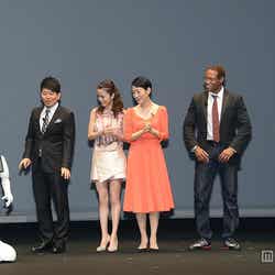 さらに特別ゲストとして、同社CMに出演する上戸、ダンテ・カーヴァー、樋口可南子、さらにRev.from VDLの橋本環奈、お笑いタレントの雨上がり決死隊・宮迫博之らがイベント中頃に登壇。上戸は美麗なミニドレスを着こなし、スラっと伸びる美脚を披露。Pepperとの対面を楽しみに、孫社長のプレゼンや速報ニュースを読まずに来たことを明かし、期待感をふくらませていた。するとPepperが上戸らゲストの前にゆっくりと登場。満面の笑みを咲かせながら、Pepperのもとへ歩み寄ると、「今日はこんな僕の引き立て役のためにお集まり頂き」と人間らしい憎まれ口を叩いた。そんなPepperの姿に上戸は、「こんなにテンポよく会話ができるなんて、すごくビックリしました」と、感動した様子を見せていた。