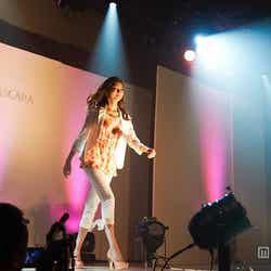 モデルの押切もえが、ランウェイで落とし穴に落ちるというドッキリに見舞われた。