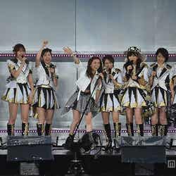 ステージ終盤、高橋みなみが「今ここに“あの人”がいないんですよ。呼んじゃいますか?」と切り出し、小嶋陽菜が「ゆうちゃ~ん!」と呼びかけると、オープニングから1曲も参加していなかった大島が満を持して登場。抑えていた力を一気に発散するようにステージ上をぴょんぴょんと飛びまわり、「みなさん元気ですか~!みんな元気そうだね~!」とハイテンションで挨拶した。