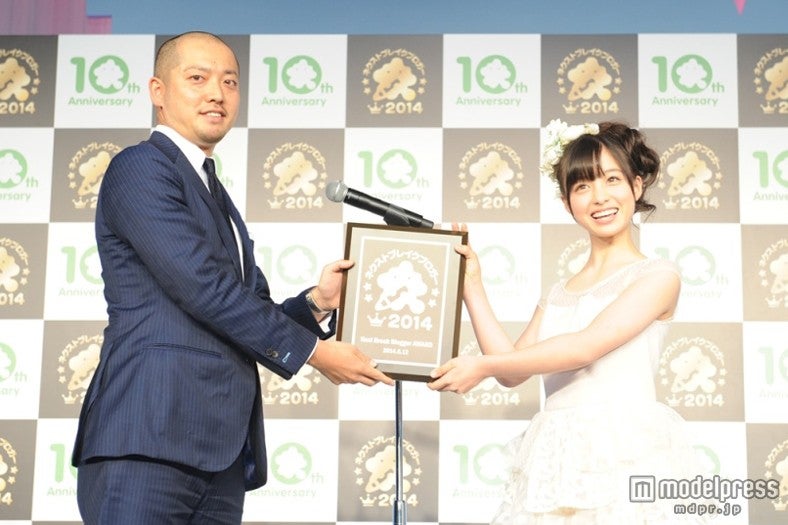 今回、モデル部門を受賞した今井とグラビア部門を受賞した筧は、「人気テレビ番組への出演をきっかけにブログが人気となり、番組共演者とのプライベートでの親交を多くの写真と共にブログに更新されることで注目を集めているほか、美容やファッションに関する投稿では、女性読者を中心に高い支持を得ている」という理由から受賞。日頃チェックしている著名人ブログについて今井は、「鈴木おさむさん」と明かし、筧は「かわいい犬の写真を毎日たくさんアップしている坂上忍さんのブログで、いつもほっこりしています」と語った。