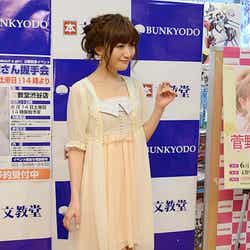 菅野は14日、都内にてブランドブック「about a girl」(14日発売)の出版記念イベントを開催。日本時間15日にキックオフされる日本対コートジボワール戦について、報道陣から注目選手を聞かれると「遠藤選手です。自分が自分がって感じではなく全体を俯瞰で見てる。そして自分でも打てる。あんなにも全てを持っている選手はいない」と自分なりの意見を発表。その一方で、「サッカーは好きですけど、大々的に言うとサッカーファンの方に申し訳ないので、密かに応援しています」と謙虚に語り、「もちろん勝ってくれると思います」と笑顔でコメントした。当日は家でひとりで観戦するという菅野は、「カフェなどでみんなと観戦するのも羨ましんですけど、ひとりで集中して観ます。入った時にTwitterで『キター!』って分かち合いたいです」と自分なりの観戦方法を語った。