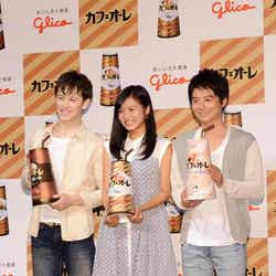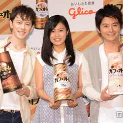 小島は19日、都内にて行われた「グリコカフェオレ」新CM発表会にウエンツ瑛士、小池徹平らと出席。小島はミニ丈ワンピース姿で、まっすぐに伸びた美脚を披露した。CM共演は今回が初となる3人。小島とバラエティ番組で共演したことのあるウエンツは、「感動作品がある番組でものすごい泣くんですよ。スイッチみたいなのが脇にあって、押せば涙が出る。泣けばテレビに映ると思ってるでしょ」と冗談っぽく小島をいじると、小島も負けじと「そんな風に思ってたんですね」と笑顔で交わした。そんな小島は、ウエンツの印象について「お兄さんのような、お父さんのような頼りになる人。バラエティでも助けてくれたり頼りにしています」といい、「小池さんは爽やかで、草原が似合いそう。現場でも気軽に声を掛けてくれて楽しい」とコメントした。