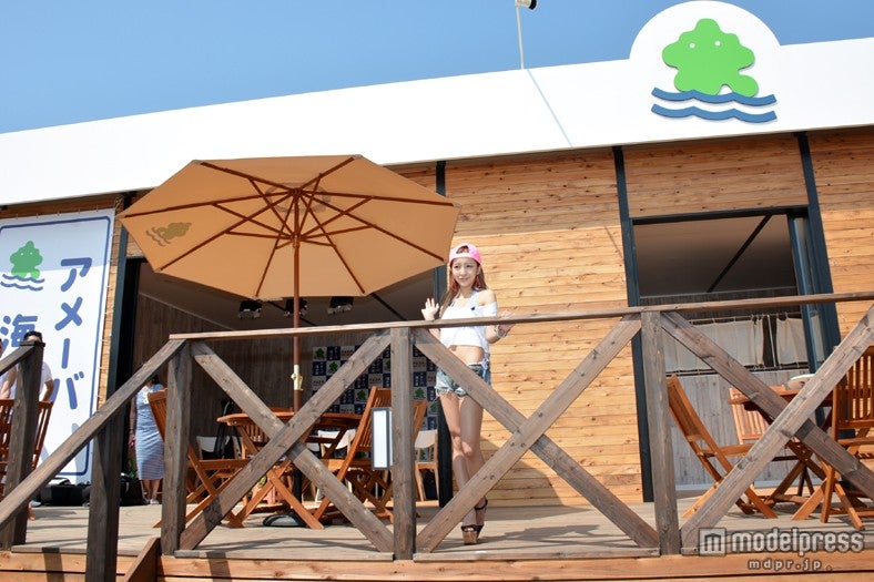 板野は2日、神奈川・鎌倉中央海水浴場にオープンした「アメーバ海の家」(7月1日~8月31日)で「Ameba海の家一日店長」イベントを開催。ビキニの水着の上にオフショルダーのTシャツとショートパンツをはおっただけの夏らしいファッションで登場した板野は、同日リリースの1stアルバム「S×W×A×G」を記念して「アメーバ海の家オープン記念特番」の生放送を行い、オリジナルカクテルを来店者に振る舞った。