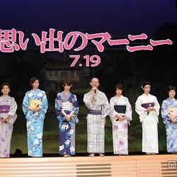 松嶋は2日、都内にて行われたスタジオジブリ最新作「思い出のマーニー」(7月19日公開)完成披露舞台挨拶に米林宏昌監督とともに出席。ヒロイン・杏奈の母親を演じた松嶋は、「母親役として杏奈を見守っていく姿や娘を思いやる気持ちがすごく理解できました。初めての子育てだと迷ったり立ち止まったりすると思いますが、それをそのまま出せばよかったので感情移入して演じることができました」と思い出深そうに振り返った。その一方で、アフレコが「2時間半くらいで終わって、あっという間で寂しかった」と本音をこぼす場面も。「でも、監督の指示が明確で分かりやすかったです。OKはOK、もう一回やってほしいところはもう1回と言われ、『あなたへの気持ちは変わらないわ』っていう(セリフ)を何度も(撮り直した)。思いはあるんですけど、それを声だけで伝えるということが難しかったです」と現場でのエピソードを披露すると、米林監督は「何度もやってもらいましたね、すみません…」と申し訳無さそうにコメントした。
