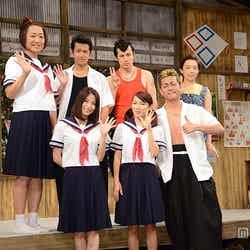 上原は3日、東京・池袋サンシャイン劇場で行われた舞台「夕-ゆう-」の公開ゲネプロに、作・演出の宅間孝行、内山、山崎静代、高橋光臣、阿部力、藤吉久美子らとともに登場。海の家で繰り広げられる青春を題材とした同舞台に、上原と内山はセーラー服姿で出演する。