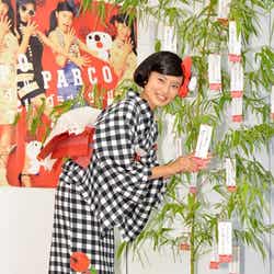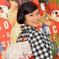 小島は7日、都内で開催された「PARCO『グランバザール』キャンペーンモデルお披露目会」に出席。白と黒のコントラストが鮮やかな浴衣姿を披露し、「りんごの模様がすごく斬新だなと思います」と浴衣と帯を彩る柄のポイントを紹介した。