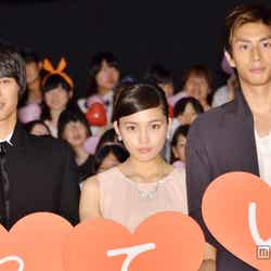 この場面で、トリをつとめた福士は「ハードル上げすぎ」と緊張した様子。役に入りきり「俺のこと好き?何も言わないと本気チューしちゃうぞ」と劇中の名セリフを披露すると、割れんばかりの歓声が起こった。福士の胸キュンセリフに、永瀬は倒れこみ、笑いを誘う一幕も。日向監督も「映画と僅差です」と絶賛した。