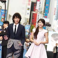 パッチワーク柄の個性的なドレスで登場した能年は、「こんなにたくさんの方に集まっていただいて、興奮しています。原作のきれいな空気感を出せるように頑張りましたので、よろしくお願いします」と挨拶。一方、レオパード柄のスーツをクールに着こなした登坂は、「作品をこれだけたくさんの方々に見ていただけると実感が湧いてきて嬉しいです。心を込めてこの作品に挑ませていただいたのでよろしくお願いします」とメッセージを送った。