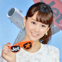「ジェットスター」のブランドアンバサダーを務める桐谷は14日、都内で行われた同社の記者会見に出席。この日は、ホワイトのオールインワンの着こなしを披露した。