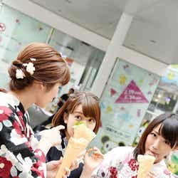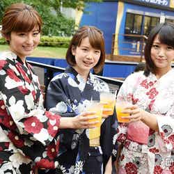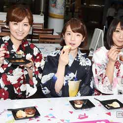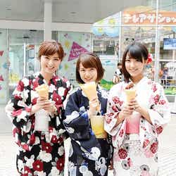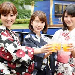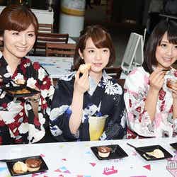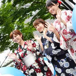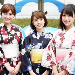 テレビ朝日アナウンサーの竹内由恵、宇賀なつみ、弘中綾香が浴衣姿を披露した。