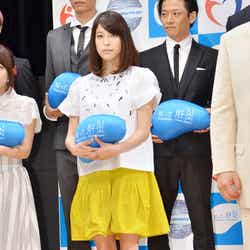 上原は22日、都内で行われた「『知って、肝炎』キックオフミーティング2014」に出席。この日は、ビジューが施されたブラウスに、鮮やかなイエローのふんわりとしたシルエットのスカートの着こなしで登場し、美脚を披露した。