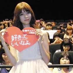 22日、都内で行われた純愛映画「好きっていいなよ。」のイベントに出席。甘い台詞やキスシーンが登場するたびに会場から「わっ」「きゃっ」などの声が響きわたった上映会を振り返り「前回はキャストの皆さんと一緒に公開前に観ました。自分が出演している映画をお客さんと一緒に観るというのが初めてだったので、すごくドキドキしてたんですけど、前回とは違った視点で観られて、こういうところがキュンとするんだなとか、お客さんと一緒に盛り上がってるような、感動を分けあっているような感じがして、すごく楽しかったです」とにっこり。