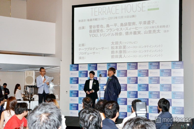 男女6人の共同生活を追ったリアリティ番組「テラスハウス」(フジテレビ系)が、日経BP社主催の「ソーシャルテレビ・アワード2014」で「日経エンタテインメント!賞」を受賞した。