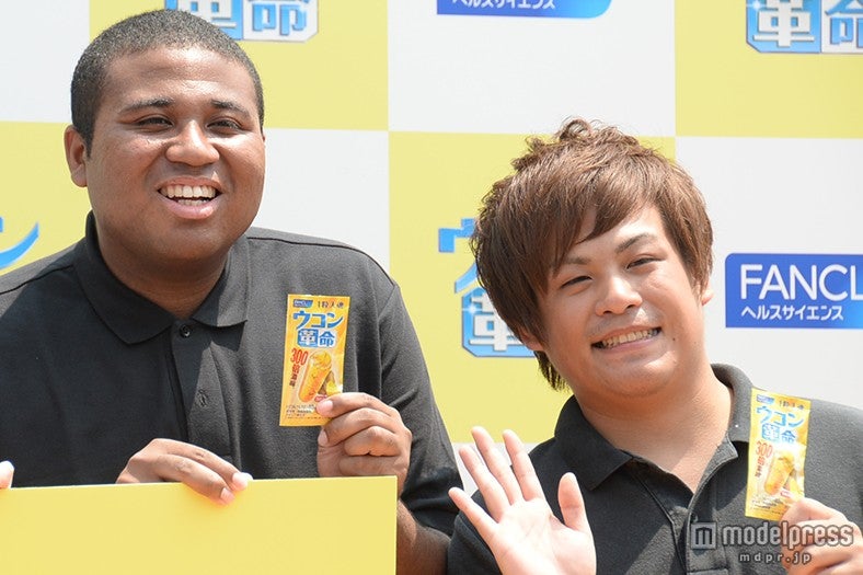 30日、都内にてファンケルヘルスサイエンスのサプリメント「ウコン革命」の発表会が行われ、博多華丸・大吉、椿鬼奴、マテンロウが登場した。