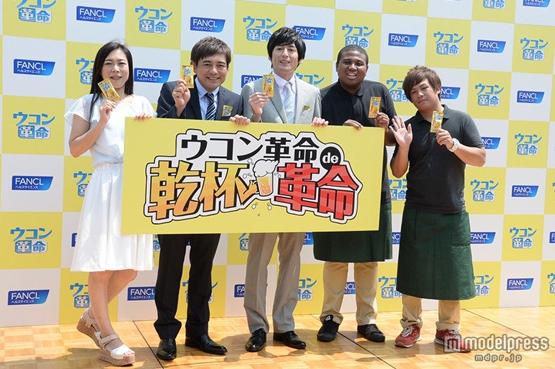 この日は、このほか炎天下の中で5人がビールジョッキを手に「飲むばい!おー!酔うばい!おー!でも明日も仕事ばい!おー!だから飲むばい?ウコン革命!」というユニークな乾杯コールを披露する一幕も。大吉は、「これからは乾杯前にウコン革命を飲んで、もう二度と素っ裸にならない」と固く誓っていた。