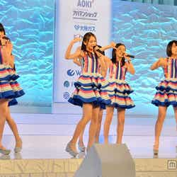 1曲目には、彼女たちのデビュー曲「明日への卒業」を熱唱。続けてこの季節にぴったりなセカンドシングル「恋する夏」を歌唱した。3曲目には発売を控える新曲「ハッピーアプリ」を披露。全3曲を全力でパフォーマンスした。
