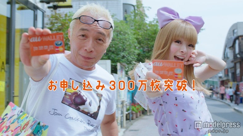 8日から放送されるauの新CM「au WALLET/拡散(きゃりーぱみゅぱみゅ)」篇には、きゃりーとタレントの所ジョージが出演。2人は一緒に原宿のポップな雰囲気のショップに入り、“お買い物デート”を繰り広げる。