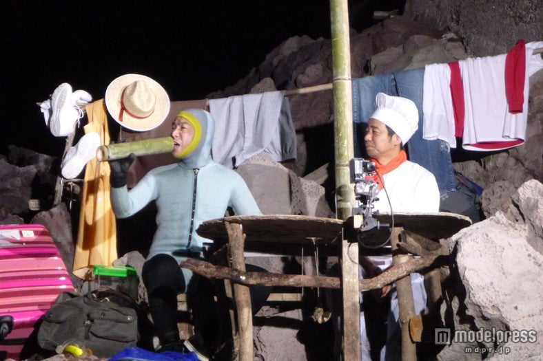 土屋&冨永愛とよゐこは過去2回(2012年、2013年)にわたり、無人島0円生活バトルを繰り広げてきた因縁の間柄。1回目は土屋が、2回目はよゐこがそれぞれ勝利を収め、現在は1勝1敗の引き分け状態。そのため、今回互いに負けられない戦いということで無人島出発前の記者会見で、負けたときの公約を発表することに。なんと、そこで土屋が「号泣会見でいいじゃん。私、泣くよ!」と発言。あわや“両チームとも負けたら号泣会見”に決まりそうになりましたが、さすがにスタッフから制止がはいるという一幕もあった。