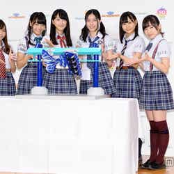 11日、都内にて行われたリゾート施設の広報大使就任発表会に出席した松井。を着こなし松井玲奈、岩永亞美、大場美奈、二村春香、古畑奈和らと清楚な制服姿で登場した。