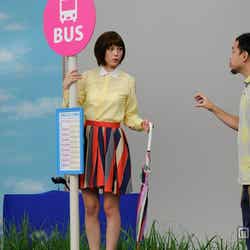 撮影では、バス停の土台に飛び乗る演技の際に、替え歌のリズムに集中しすぎて土台を踏み外してしまうNGも。しかし次第にリズムが体にしみこんでいったようで、順調にクリアした。また、今回のCMセットのミニチュア模型を発見した本田は興味津々。CMと同様に大空に飛び立てる仕様となっている自身のミニチュア人形に「うわ、これ私だー」「空飛んでるー」と屈託のない笑顔を浮かべ楽しんだ。
