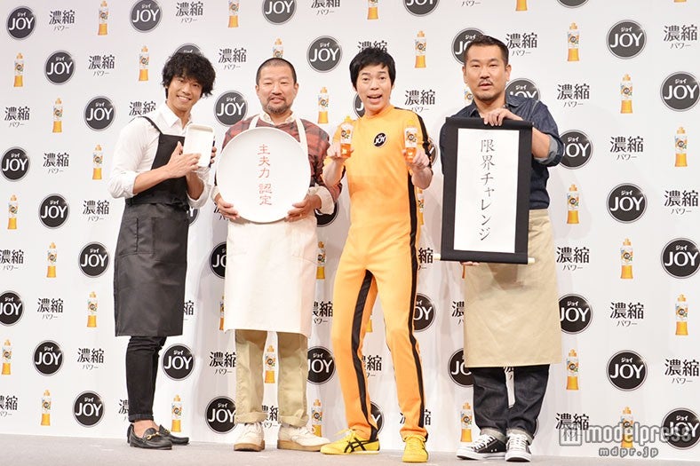 イベントでは、新製品「ジョイ コンパクト」を使用し、しつこい汚れを落とすデモンストレーションも実施。ここでは、油汚れの象徴でもある中華油汚れを落とすべく、自身も大ファンであるというブルース・リーの姿に扮した今田がもう一つの“限界チャレンジ”「中華街チャレンジ」を展開。“主夫力芸人”の木村祐一、藤本敏史、庄司智春は、今田のCMキャラクター就任を祝し、さまざまな汚れがついた皿やお弁当箱をプレゼント。しつこい汚れをより強力に素早く洗い落とす新開発「濃縮パワー処方」を備えた「ジョイ コンパクト」を武器に食器洗いバトルを繰り広げた。庄司より贈られたのは、ハンバーグのソースがこびりついたお弁当箱。今田はお弁当箱の中に、氷水とわずか1mlの洗剤を入れて思いっきりシェイク。お弁当箱を振るだけで、しつこい油汚れを見事に落としきった。これには「臭いまで落ちてる」(木村)、「イリュージョンや」(藤本)と主夫力芸人も驚きの様子。