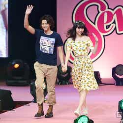 モデルで女優の江野沢愛美と古畑星夏が、2ショットでランウェイをウォーキングした。