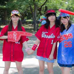 モデルの田中里奈や雑誌「Popteen」で活躍している松本愛らが、キュートな野球ユニフォーム姿を披露した。