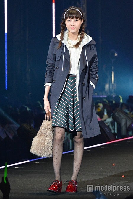 また、筧はチェック柄のスカートに袖にファーがあしらわれたトレンチコートを羽織ったスタイリングを披露。ステージ終盤では、タレントの丸高愛実によるアゲアゲなDJプレイに合わせモデル仲間と楽しげにダンスしていた。