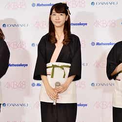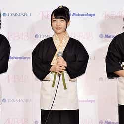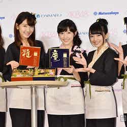 21日、都内で行われた「大丸・松坂屋 AKB48コラボおせち」発表会に出席した渡辺。会見には、柏木由紀、加藤玲奈、向井地美音、大和田南那も登場した。