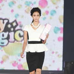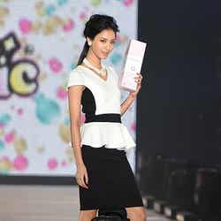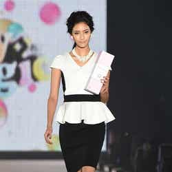 「KANSAI COLLECTION」初登場の菜々緒は、ホワイトのペプラムトップスにブラックのタイトスカートを合わせたモノトーンスタイルを披露。“ハーフっぽく人形っぽい”雰囲気を演出できるというカラコンを着用し、大人の色気漂う眼差しで観客を魅了した。