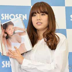 グラドル篠崎愛、豊満バストに「今凄くデカいです。張ってます」