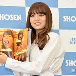 また過去3年分のフォトストックを200ページに渡って掲載した同写真集をめくりながら篠崎は、「どんどん大人になっていく感じです」としみじみ。「顔も変わりました。体重は、昔の方が痩せていた気がします」と語り、スタイルについて、「大人になったので、パーンという感じではなくなりました」と身振りを交えながら紹介して、大人の女性への成長を実感している様子を見せた。
