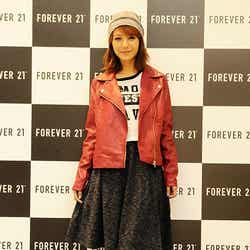 大石は26日、岐阜県のFOREVER21「イオンモール各務原」のオープニングイベントに出席。この日は、今季のトレンドカラーのバーガンディーのライダースジャケットの着こなしで登場した。