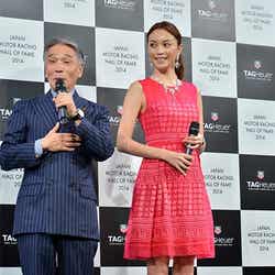 30日、都内にて行われた「ジャパン・モーターレーシング・ホール・オブ・フェイム」授賞式にプレゼンターとして出席した蛯原は、赤のミニドレスを着こなし美脚を披露。イベントでは紅一点となったため「華を添えるという意味で、赤のドレスを選びました。時計もダイヤモンドなんです」と輝く美貌で圧倒した。この日は、ゲストとしてタレントの堺正章も登壇。あまり現場で会う機会がないという蛯原に対し、「たまにしか会えないけど元気でいいよね。結婚してからよくなったよね。そういう感じがあるよ」と“人妻オーラ”を絶賛。一方、蛯原も「(今日は)堺さんとご一緒できて嬉しい」と喜びをあらわに。